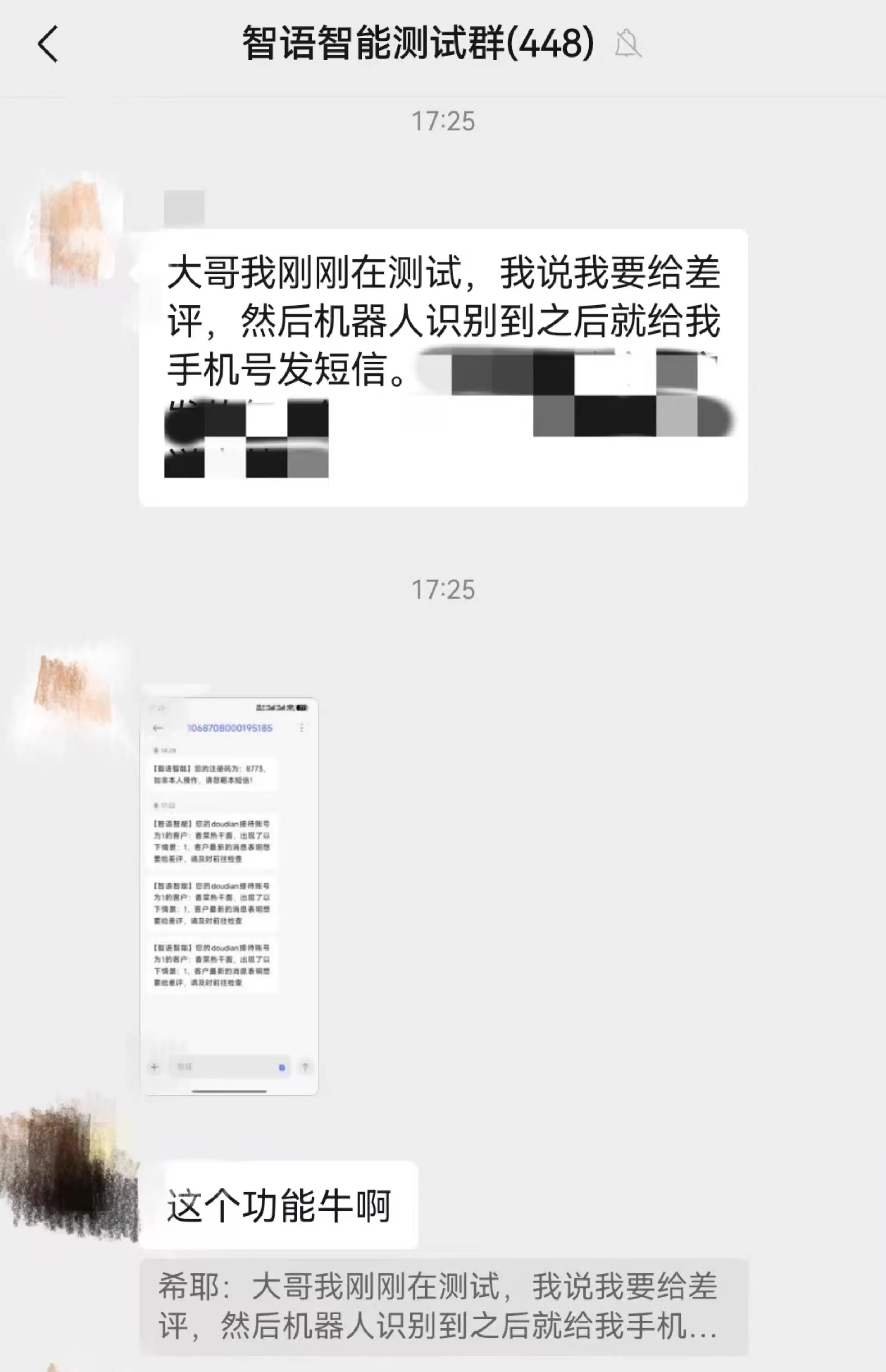 部分用户在群内的使用反馈: